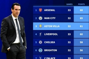1、阿森纳 33场68分
