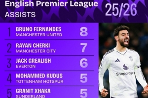 本赛季英超助攻榜:B费、谢尔基、格拉利什前三,特罗萨德在列