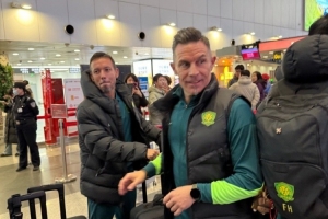 球迷晒照:原成都蓉城教练汉斯、罗德里戈随北京国安出发冬训