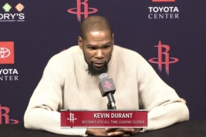 体育资讯1月19日讯 火箭今日主场119-110轻取鹈鹕,杜兰特荣升NBA历史得分榜第六,赛后接受了媒体采访。
