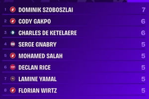 本赛季欧冠创造重大机会榜:索博7次第一,赖斯、亚马尔在列