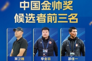 体育资讯1月22日讯 《足球周刊》公布了2025中国金球奖各奖项前三名,其中常卫魏、李金羽、邵佳一跻身中国金帅奖前三名。