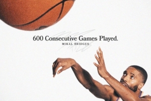 据统计,此役是布里奇斯连续第600场出战,继续刷新现役最长纪录,NBA历史连续出战纪录是由AC-格林保持的1192场,时间跨度为1986年11月20日至2001年4月19日。
