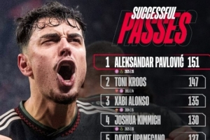 拜仁球员单场欧冠成功传球次数榜:帕夫洛维奇居首,克罗斯次席