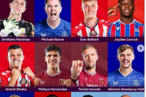 中场:扎卡(桑德兰)、M-费尔南德斯(西汉姆)、绍切克(西汉姆)、霍尔(埃弗顿)