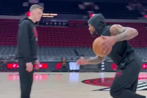 上一篇: 杀手锏莱昂纳德赛前热身练习中距离单打~